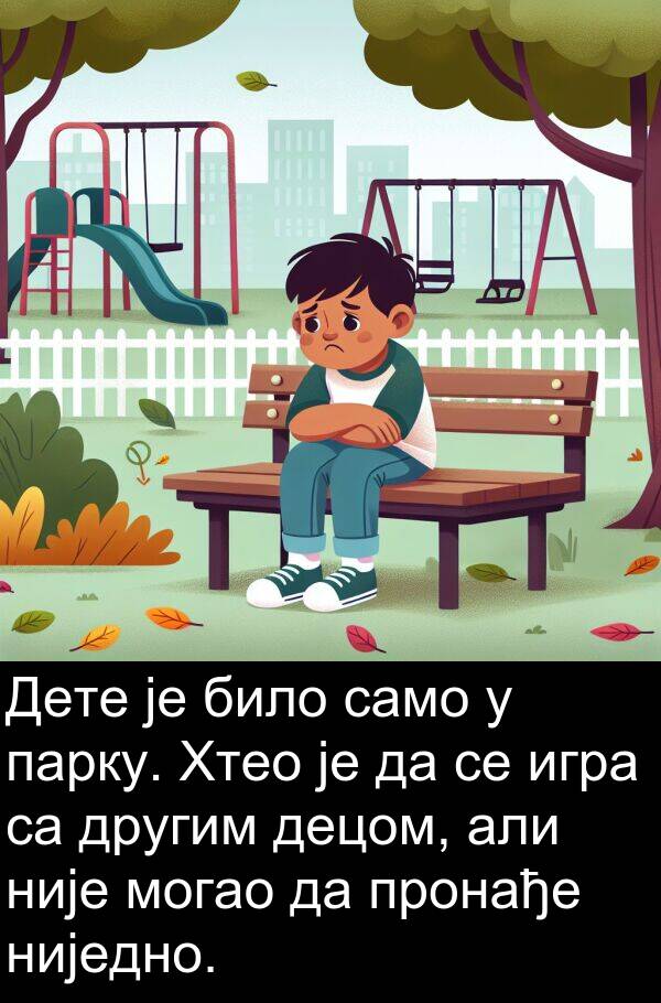 Дете је било само у парку. Хтео је да се игра са другим децом, али није могао да пронађе ниједно.