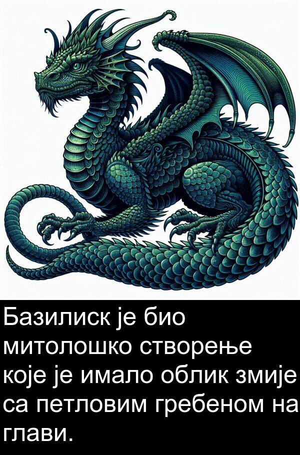 Базилиск је био митолошко створење које је имало облик змије са петловим гребеном на глави.