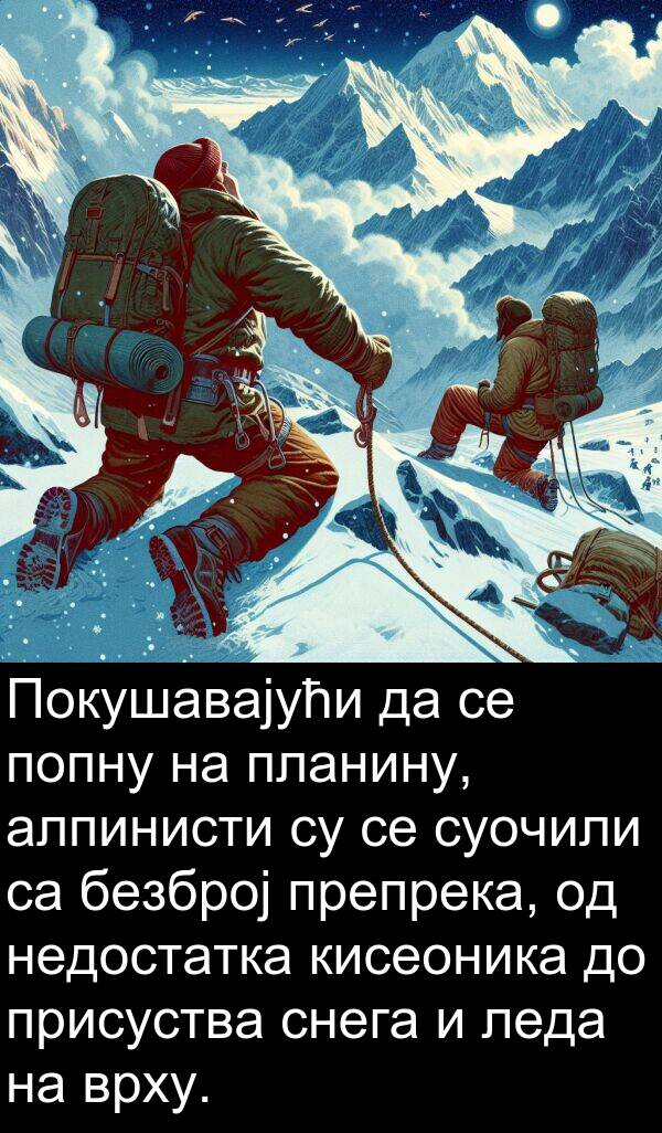 Покушавајући да се попну на планину, алпинисти су се суочили са безброј препрека, од недостатка кисеоника до присуства снега и леда на врху.