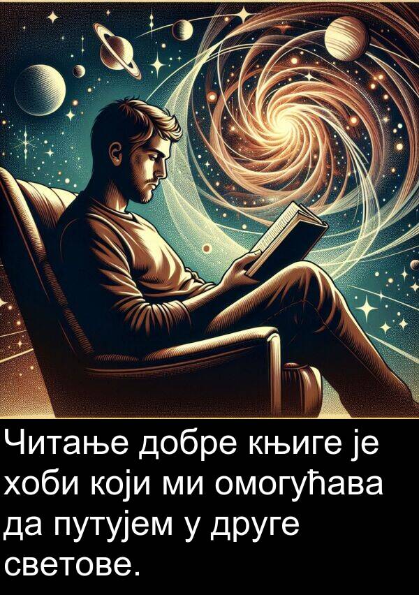 Читање добре књиге је хоби који ми омогућава да путујем у друге светове.