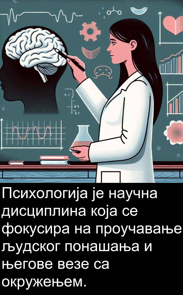 Психологија је научна дисциплина која се фокусира на проучавање људског понашања и његове везе са окружењем.