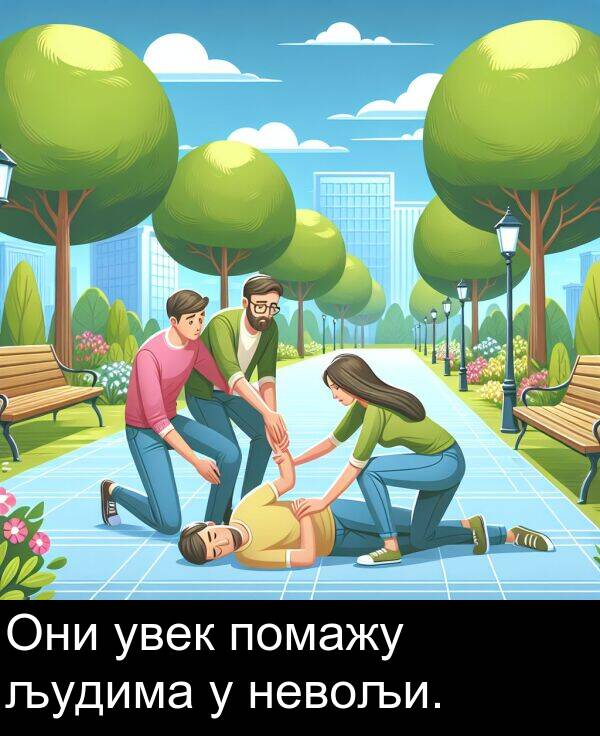Кратке и једноставне реченице са „људима“ — погодне за децу/ђаке, са честим везама и сродним речима.