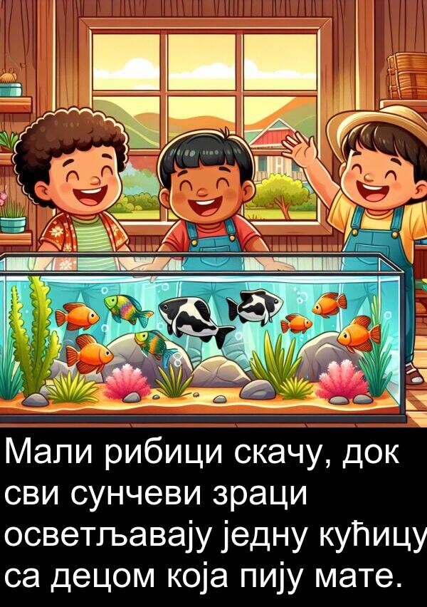 Мали рибици скачу, док сви сунчеви зраци осветљавају једну кућицу са децом која пију мате.