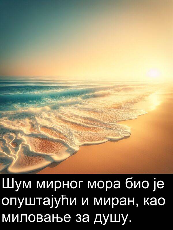 Шум мирног мора био је опуштајући и миран, као миловање за душу.